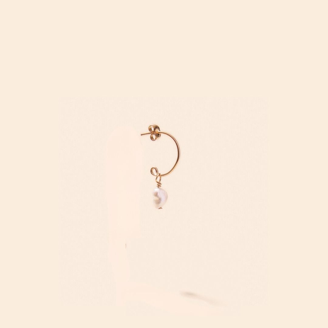 Ces boucles d'oreilles sont composées de perles d'eau douce. Elles sont assemblées à la main dans notre atelier à Bordeaux, France. Chaque perle est unique et leur couleur et leur aspérité peuvent légèrement différer de la photo.