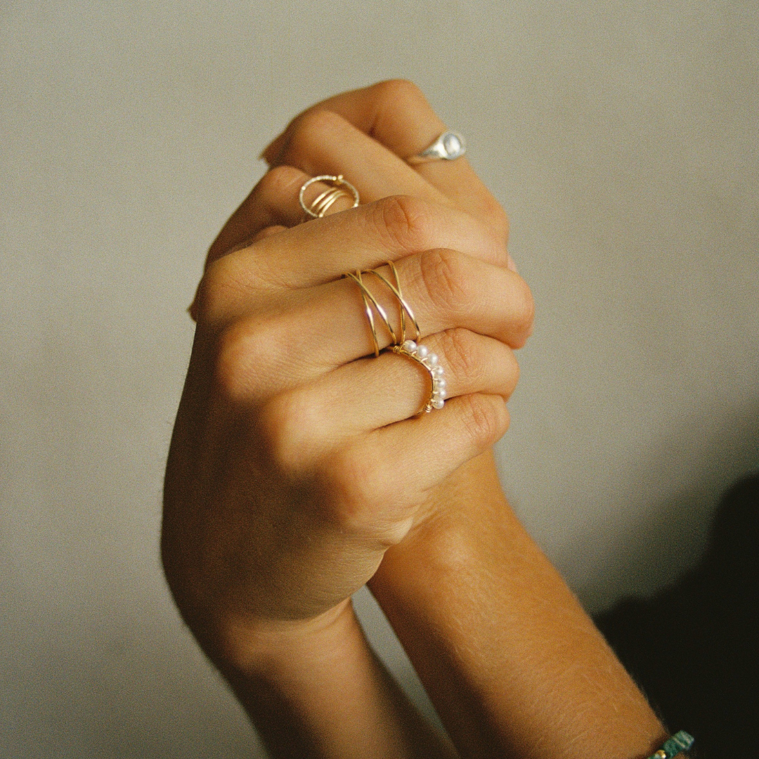 La bague fine tissée nacres est composée d'un corps de bague en goldfilled 14 carats  et de fine perles d'eau douce tissées autour. Ce bijou est assemblé à la main dans notre atelier à Bordeaux, France. Chaque perle est unique et leur couleur et leur aspérité peuvent légèrement différer de la photo.