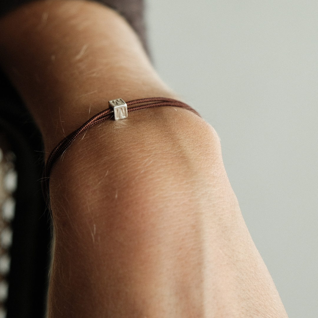 Ce bracelet est composé d'une lettre cube personnalisable en argent 925. Il est réalisé à la main dans notre atelier à Bordeaux, France. Vous pouvez choisir la couleur de votre cordon.