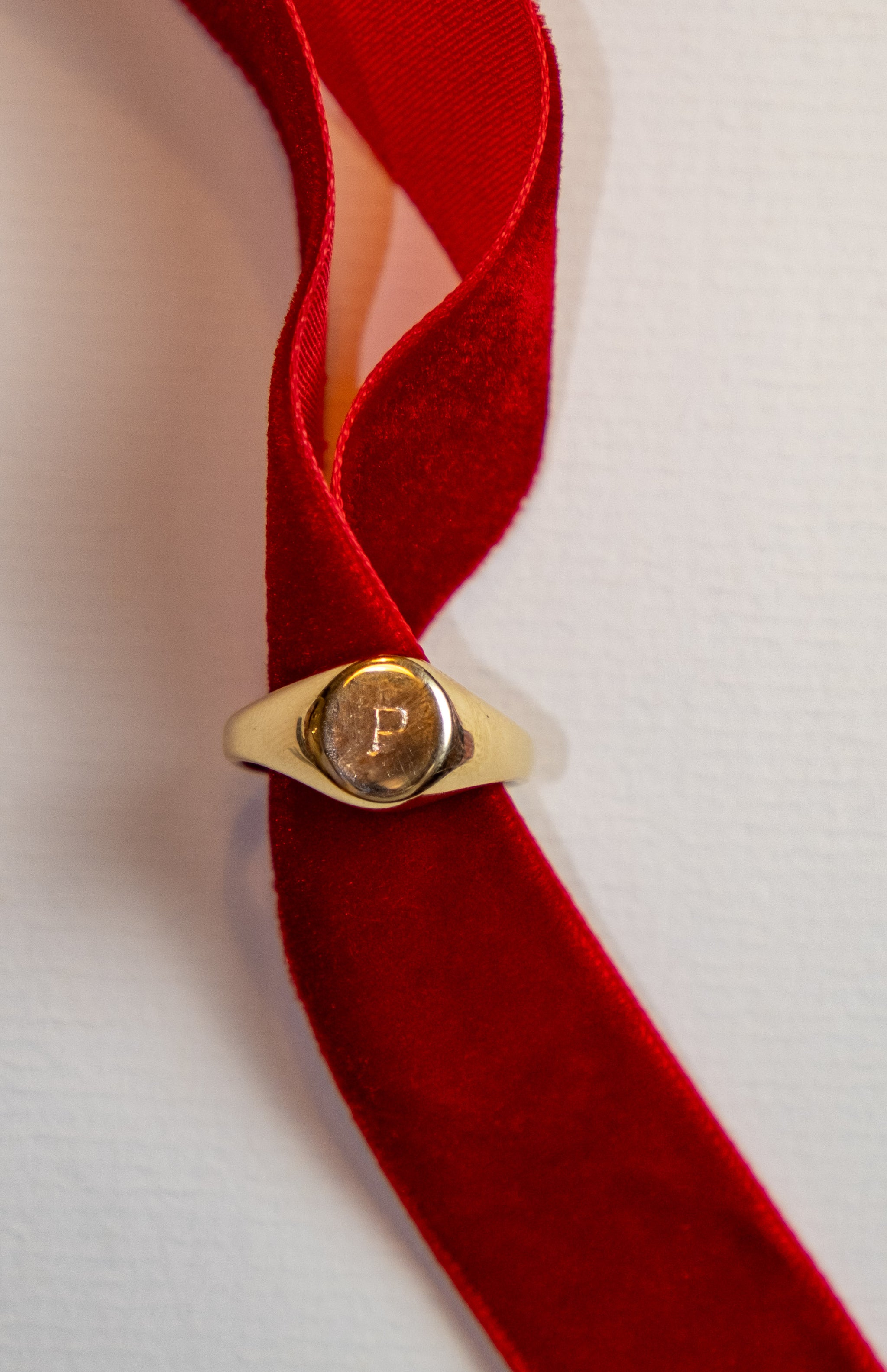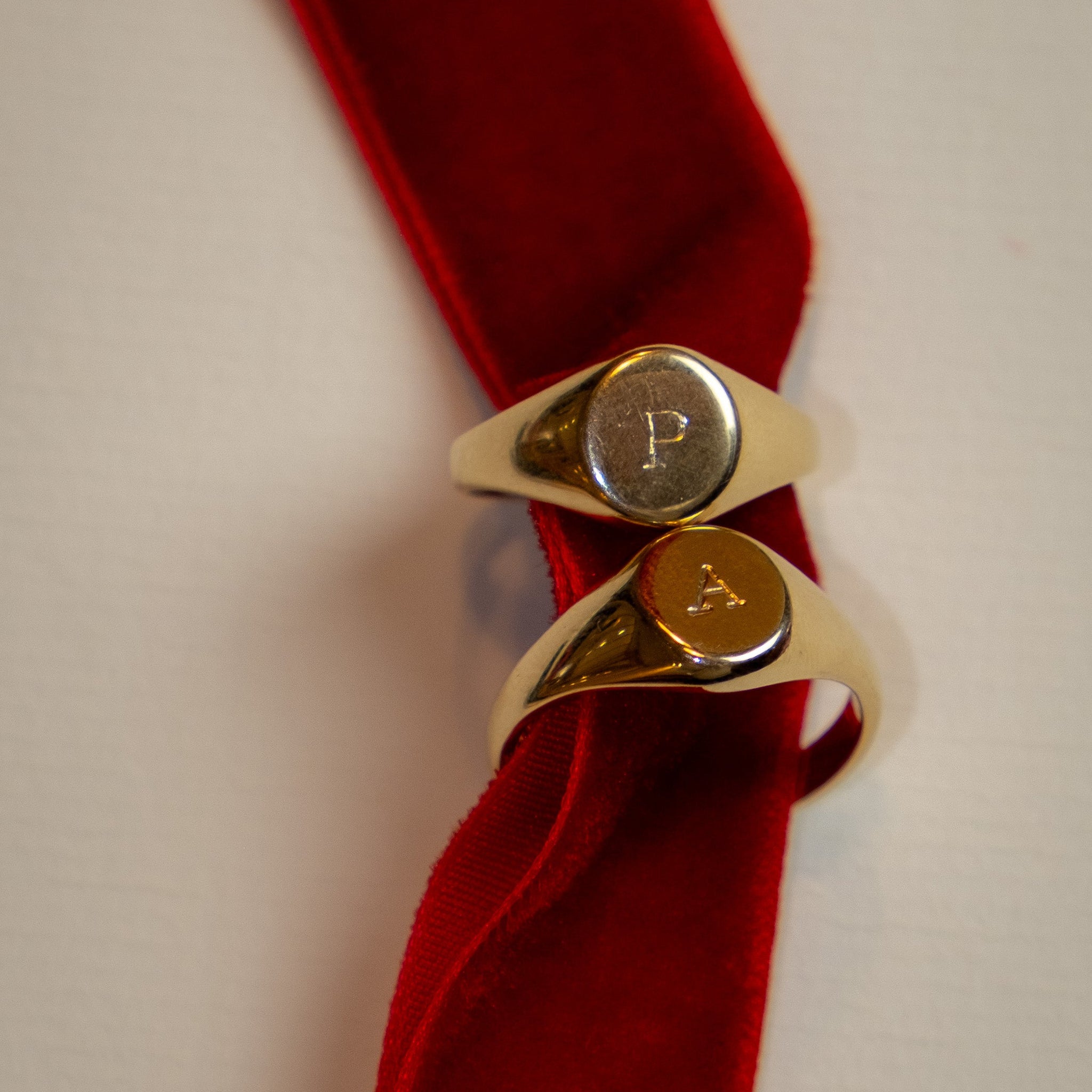 Cette chevalière est en plaqué or 3 microns 18 carats. Elle est estampée à la main dans notre atelier à Bordeaux, France.