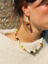 Ces boucles d'oreilles sont composées de perles de nacres ainsi que de pierres naturelles.