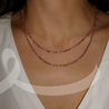 Le collier Baia rhodonite est composé de pierres naturelles rhodonite en forme de tube liées par de fines perles de gold filled 14 carats.