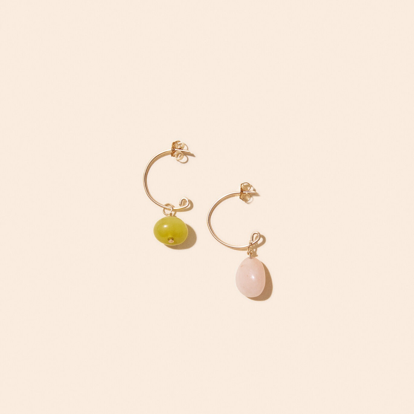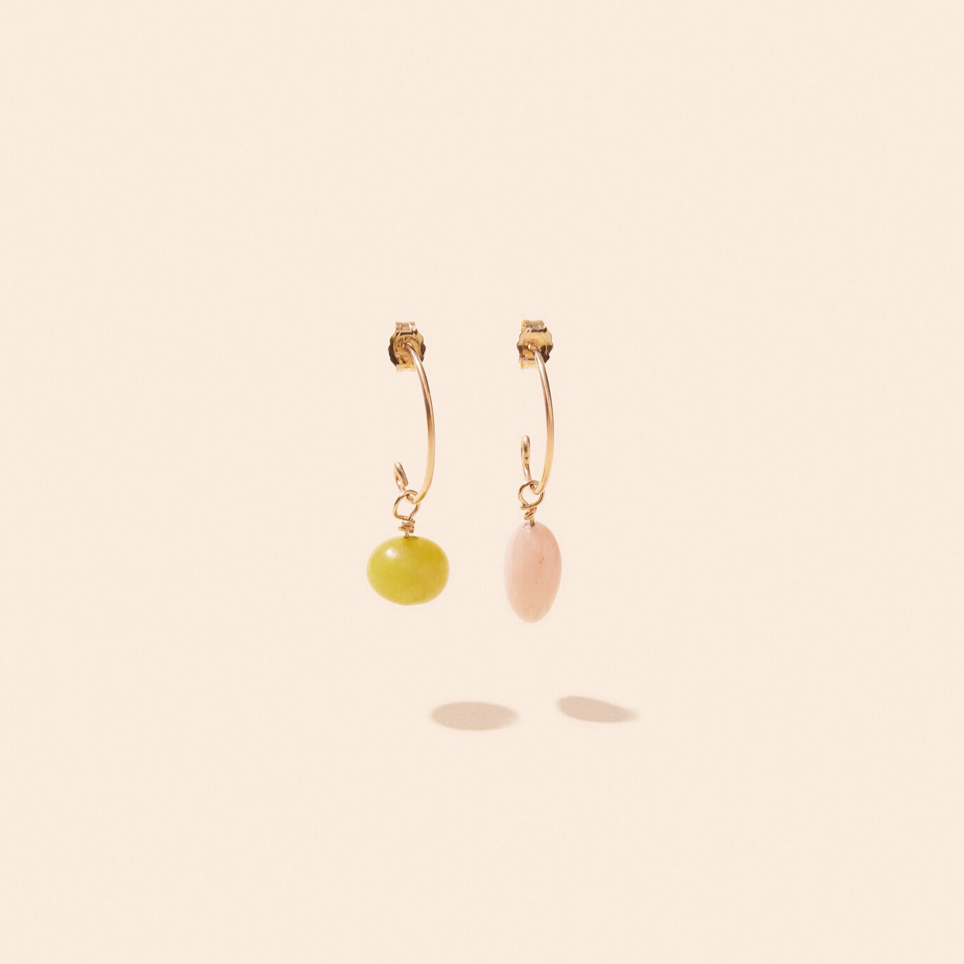 Chaque pierre est unique : leur couleur et leurs aspérités peuvent légèrement varier par rapport à la photo, ce qui rend chaque paire de boucles véritablement singulière.